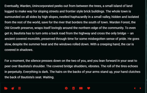 Elliot Zink is a US-based author, scriptwriter, and gamedev currently working on Greenwarden, a Twine-based interactive novel. He specializes in character-driven narratives, intricate worldbuilding, and horror.He also makes a mean martini.